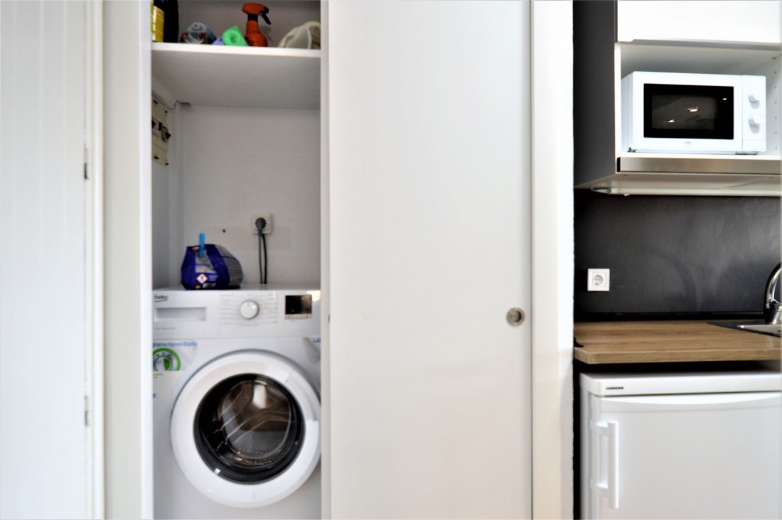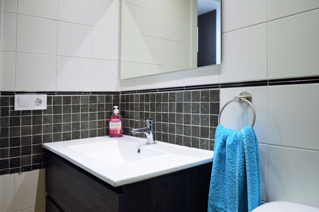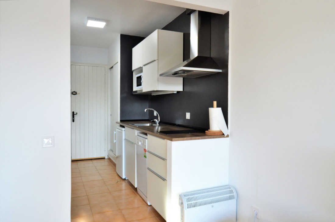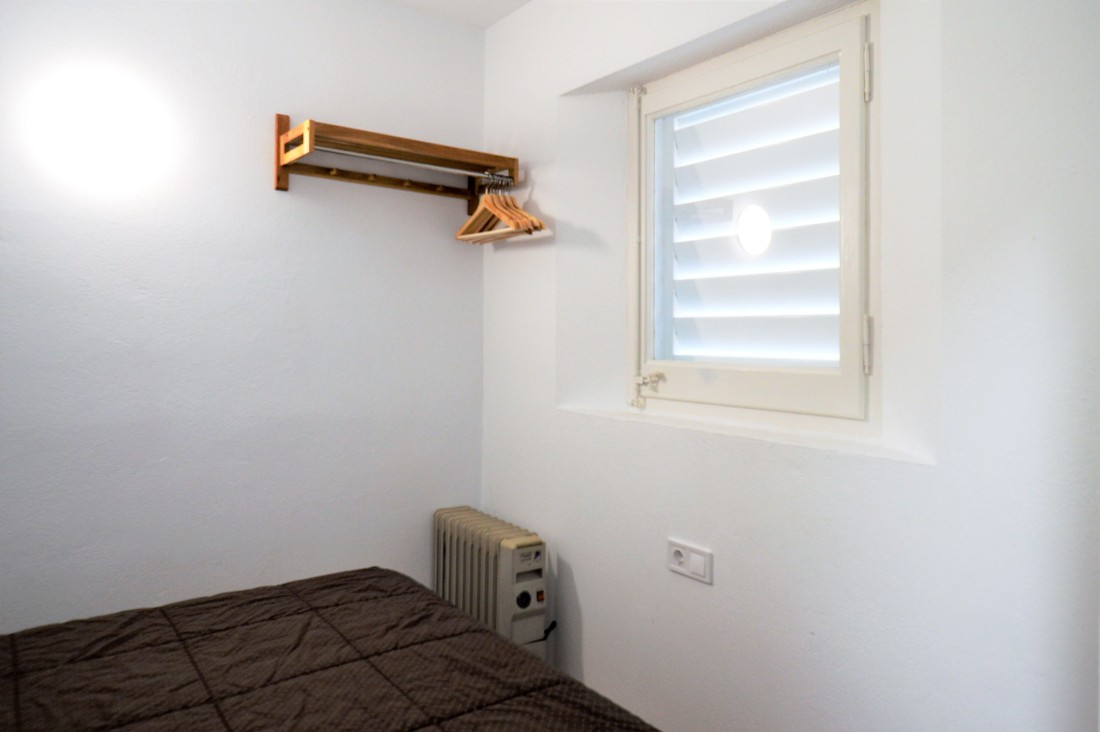 L'apartament està reformat i molt ben cuidat. Té una cuina totalment equipada, una habitació doble amb finestra i un bany complert amb dutxa. Dins de la mateixa comunitat té una plaça d'aparcament.