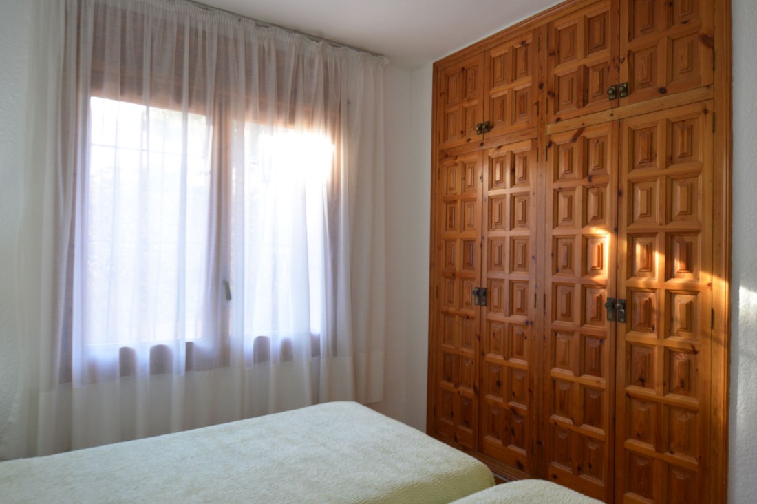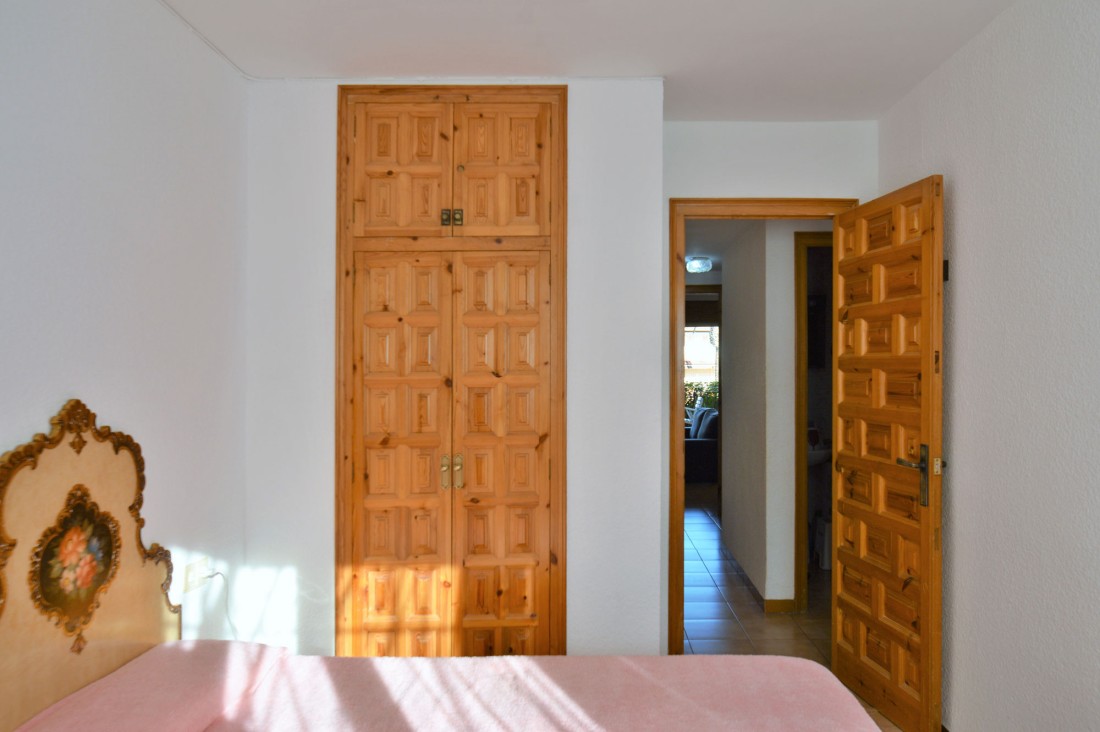 The property is located in a residential complex with three swimmingpools suitable for all ages. This ground-floor apartment boasts a large terrace and access to the communal garden. The apartment is very well maintained and features a spacious and bright living room with a fireplace and sliding doors leading to the incredible terrace, which opens onto the communal pool and garden area. The kitchen is open to the living area.