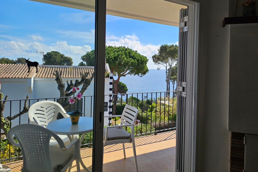 Apartamento en Calella de Palafrugell con una espectacular terraza y preciosas vistas al mar. Ubicado en una preciosa comunidad de apartamentos con un tranquilo jardín con piscina. Zona de juegos para niños.