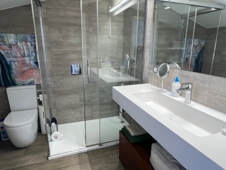 En total tiene cuatro dormitorios, tres de ellos con acceso a la terraza. En la primera planta hay un dormitorio doble con terraza, armarios empotrados, baño con plato de ducha. Tiene dos dormitorios dobles más con terraza, ventanas y armarios empotrados. Baño complero. En la planta ático un cuarto dormitorio suite con baño, acceso a una gran terraza con fabulosas vistas a la costa de esta bonita zona de la Costa Brava. Garaje para dos coches y trastero.