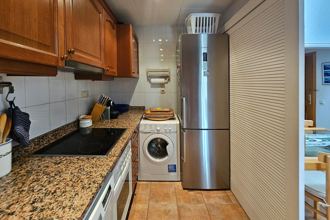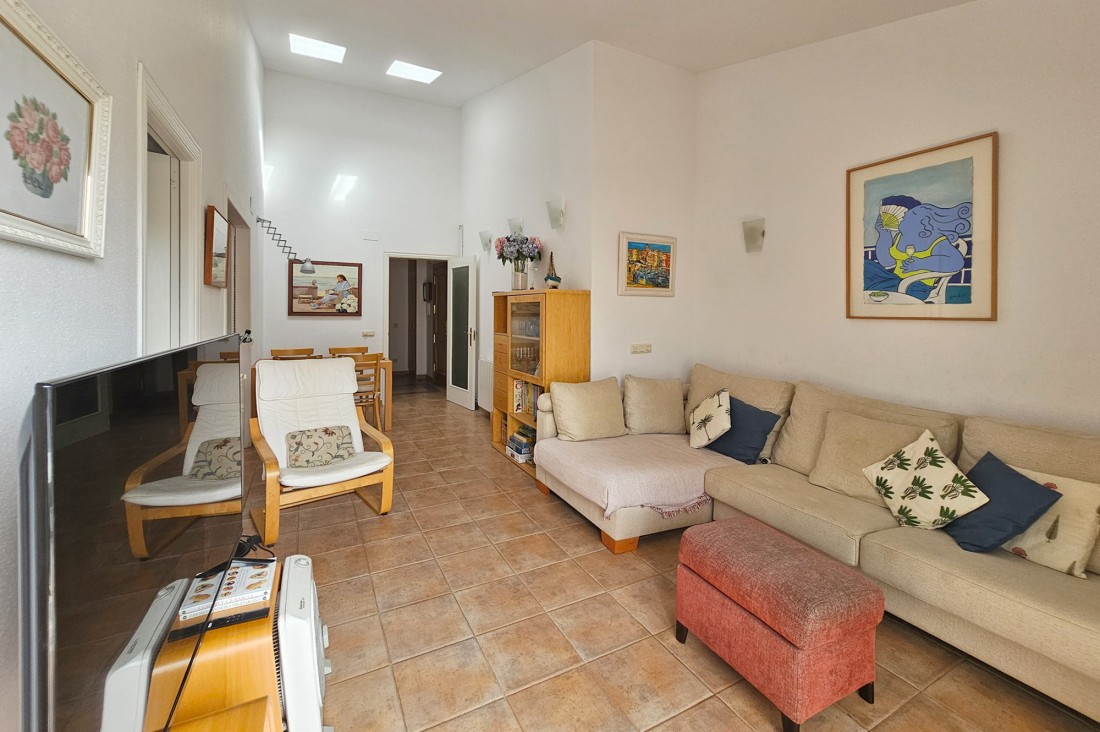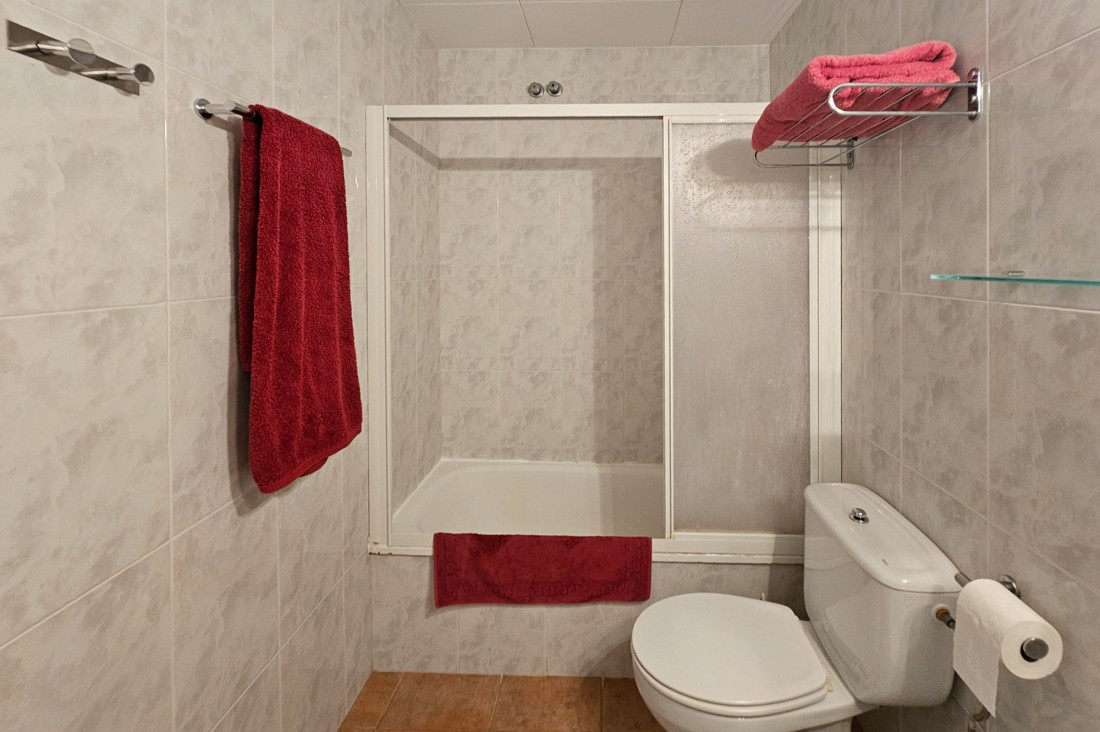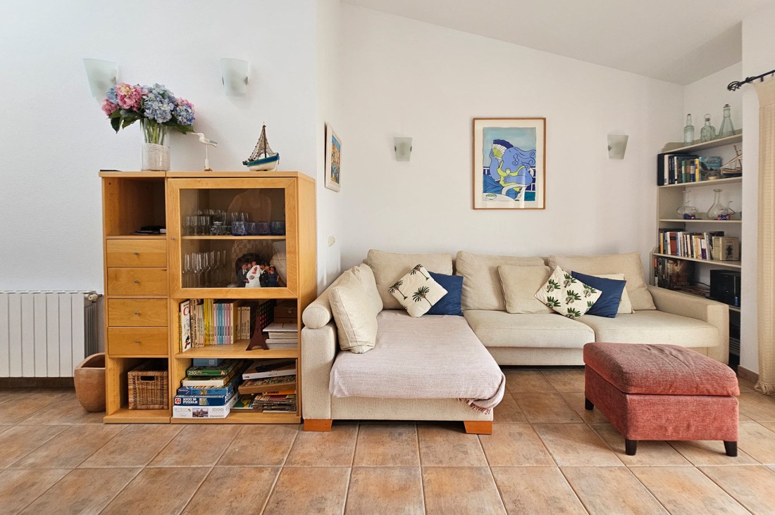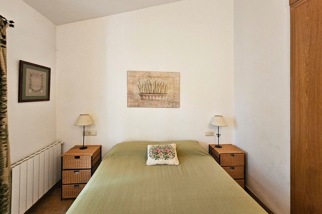 L’apartament té saló menjador amb sortida a una terrassa al centre del poble, cuina molt àmplia amb tots els electrodomèstics. Pel que fa a la zona de nit, l’apartament té tres habitacions, una doble gran amb armaris encastats amb bany complert i amb sortida a una terrassa. Té una segona habitació, també doble amb armaris encastats i finestra, un altre bany amb dutxa i una tercera habitació també amb armari. L’apartament té calefacció central de gas.