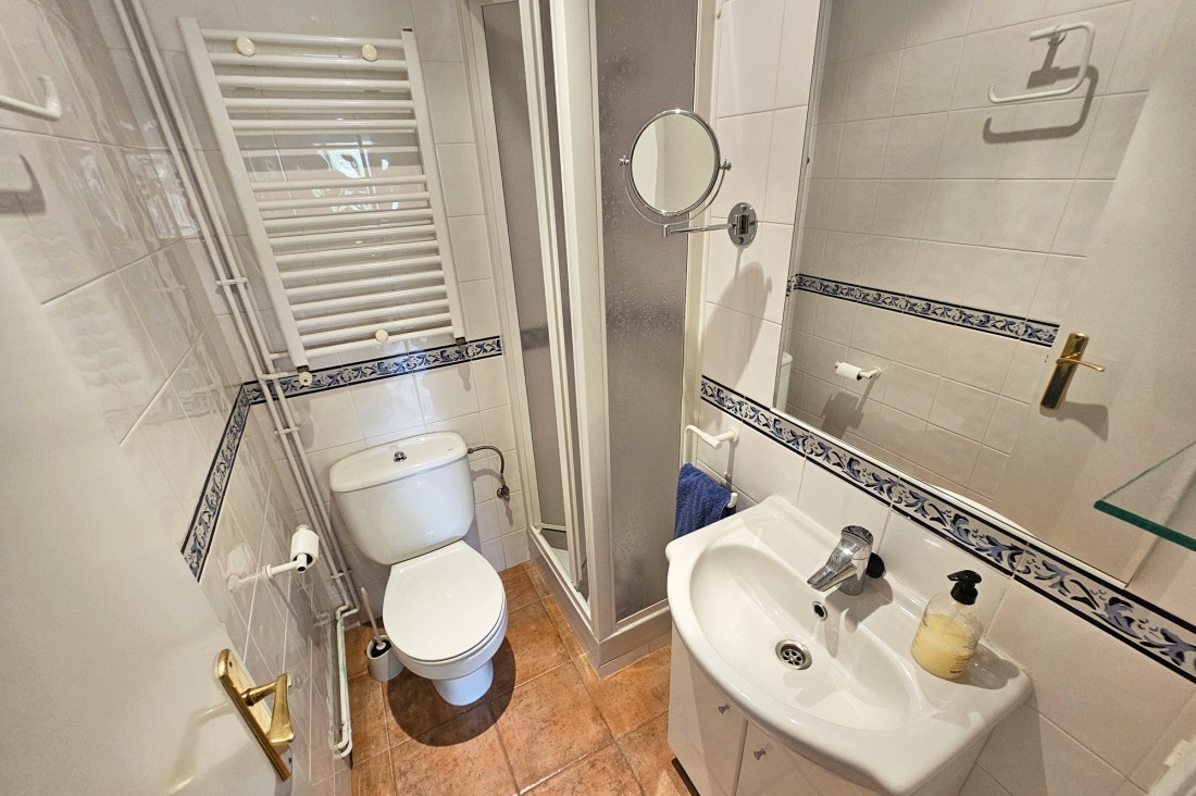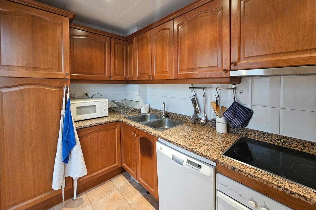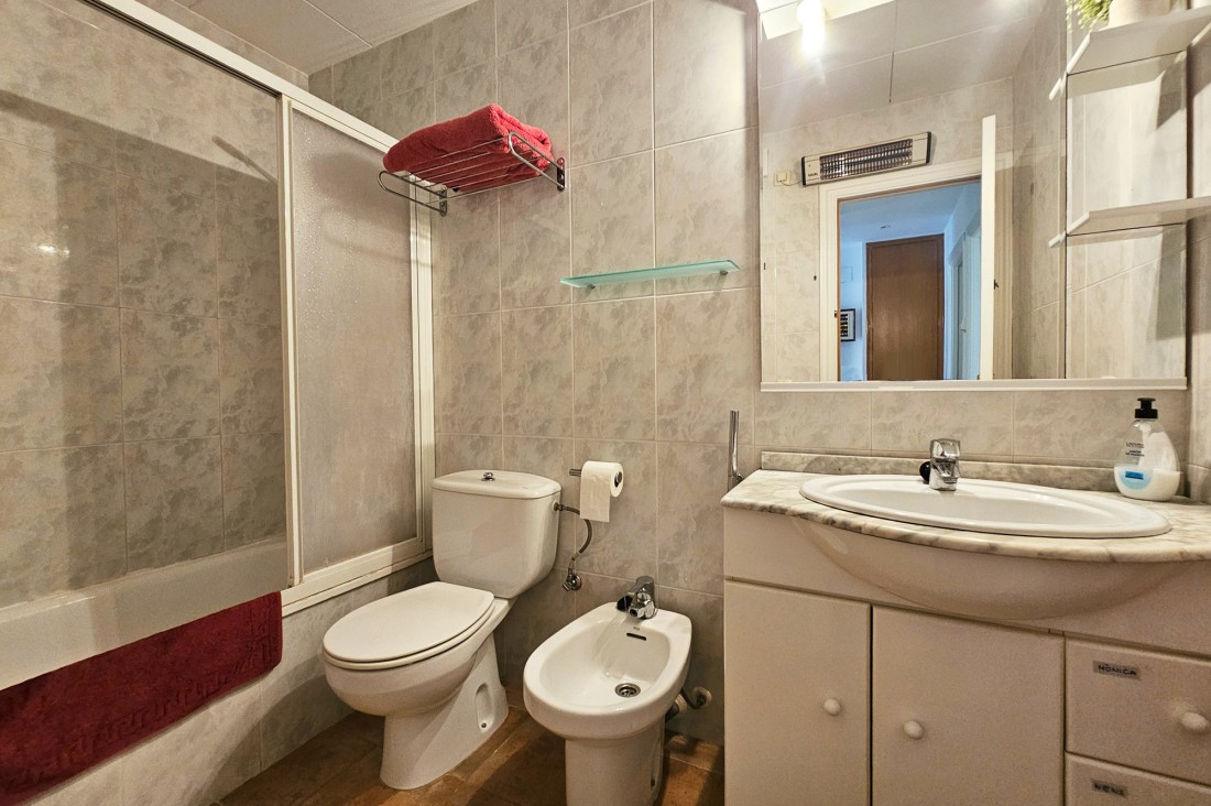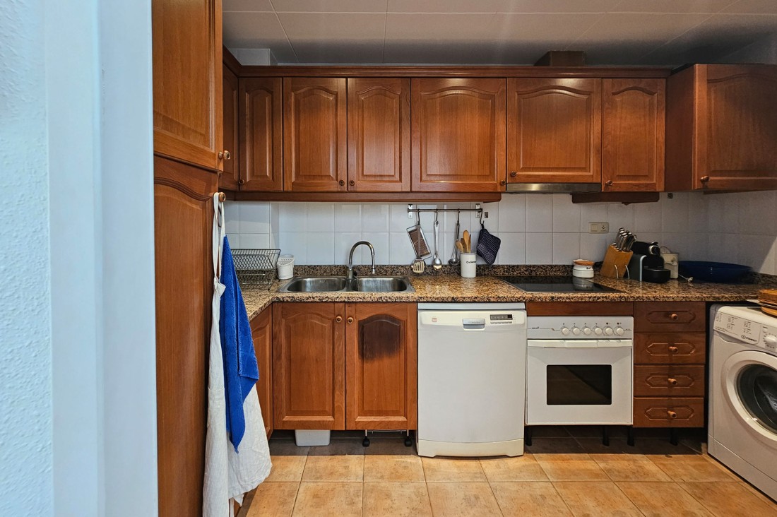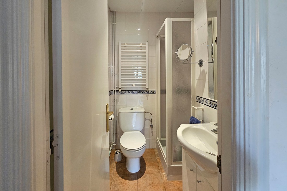 L’apartament té saló menjador amb sortida a una terrassa al centre del poble, cuina molt àmplia amb tots els electrodomèstics. Pel que fa a la zona de nit, l’apartament té tres habitacions, una doble gran amb armaris encastats amb bany complert i amb sortida a una terrassa. Té una segona habitació, també doble amb armaris encastats i finestra, un altre bany amb dutxa i una tercera habitació també amb armari. L’apartament té calefacció central de gas.