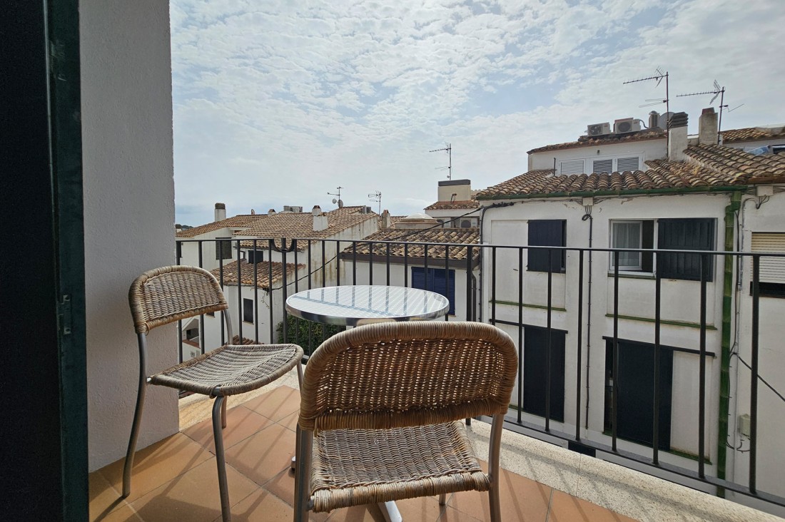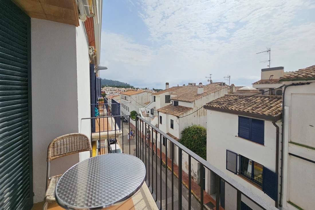 Apartament àtic situat a la última planta d’un edifici que es troba a segona línia de platja, al centre del poble de Calella de Palafrugell. L'apartament destaca sobretot perquè al estar situat a la planta àtic de l’edifici, té uns sostres molt alts que aporten sensació d’espai visual a l’habitatge, compta amb finestres al sostre que aporten molta llum al conjunt.