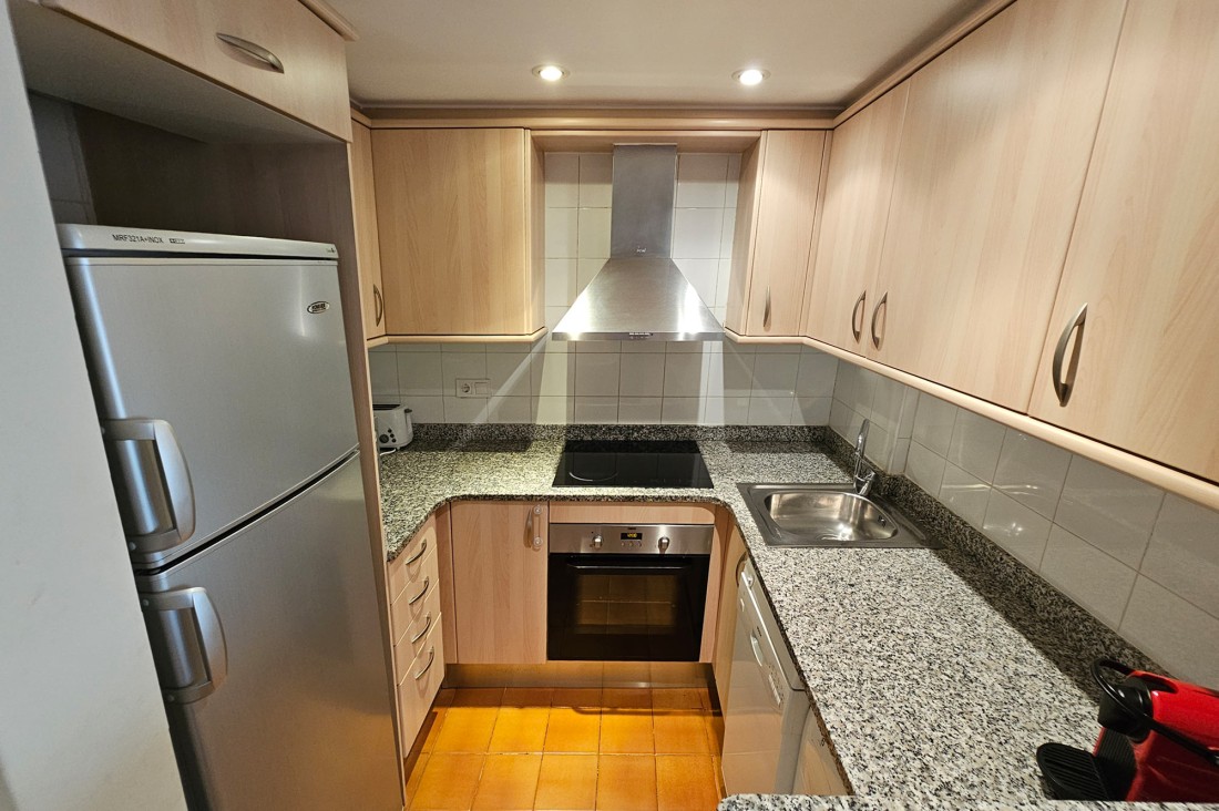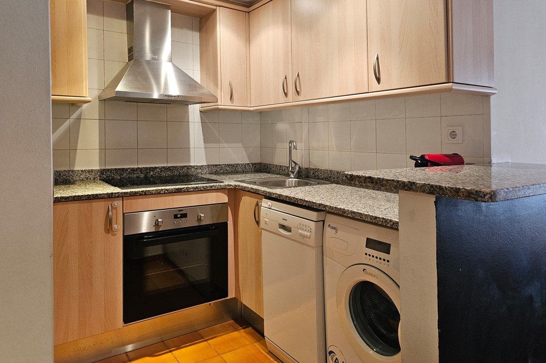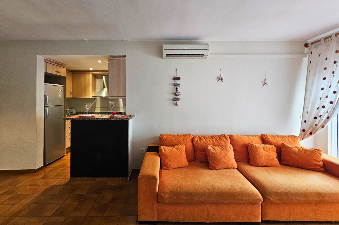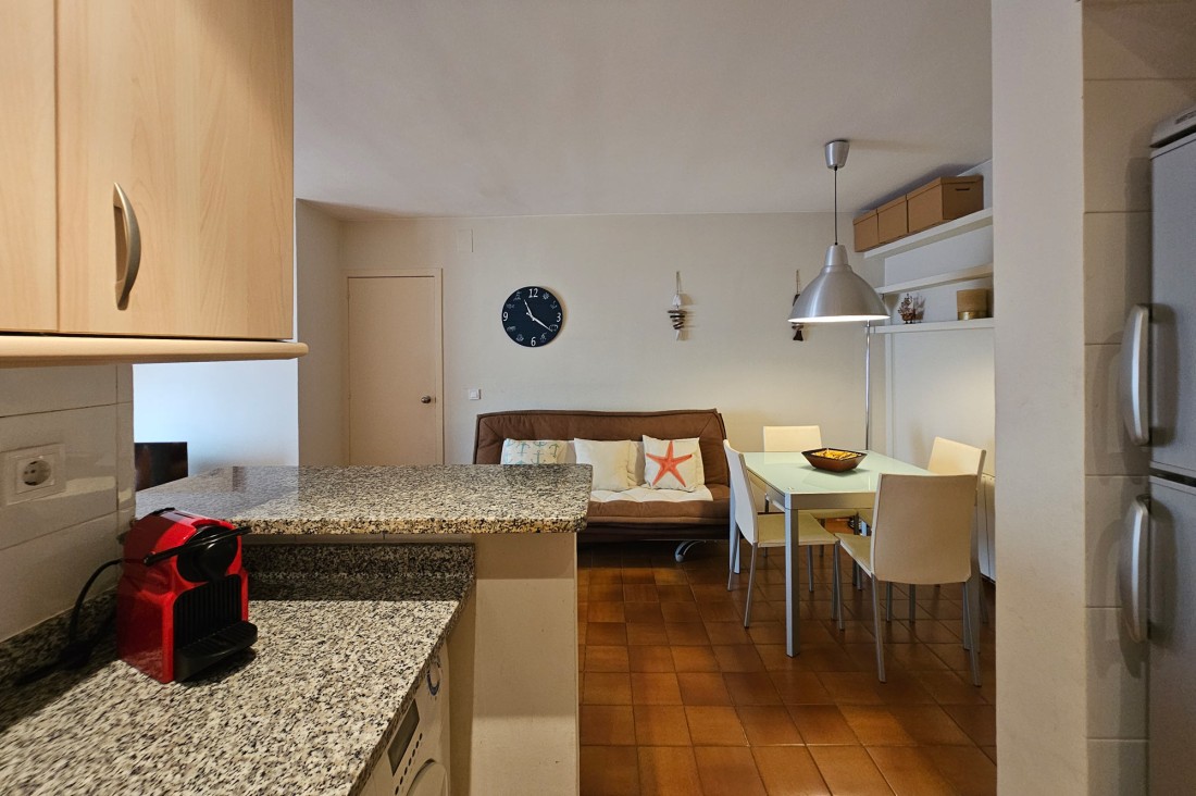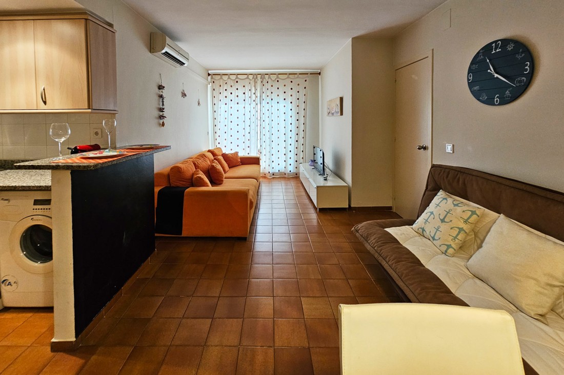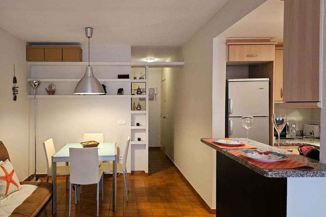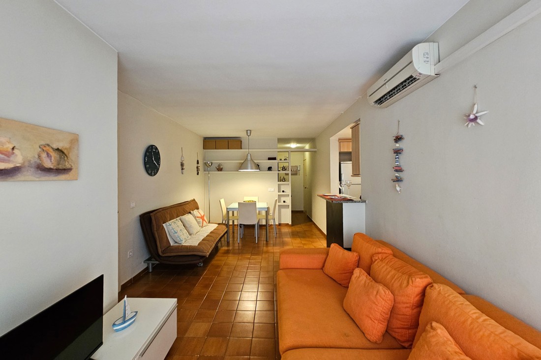 L´apartament està en un edifici de pocs veïns, es troba a la planta baixa, i es compon de saló menjador, cuina en concepte obert amb tots els electrodomèstics, bany amb dutxa i dues habitacions. Equipat i moblat, té aire condicionat.