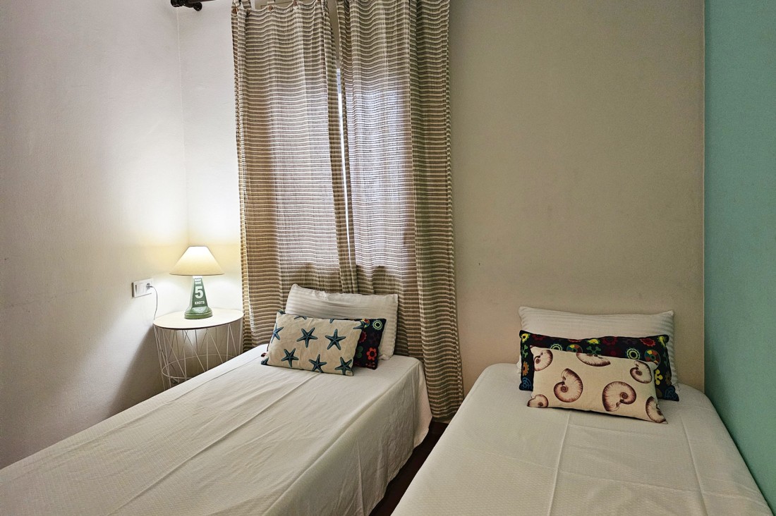 De la sala d´estar i també de l´habitació doble s´accedeix al pati. L´habitació doble té armari encastat i sortida directa a la terrassa. Bany amb dutxa. I l'altra habitació també té un armari encastat.