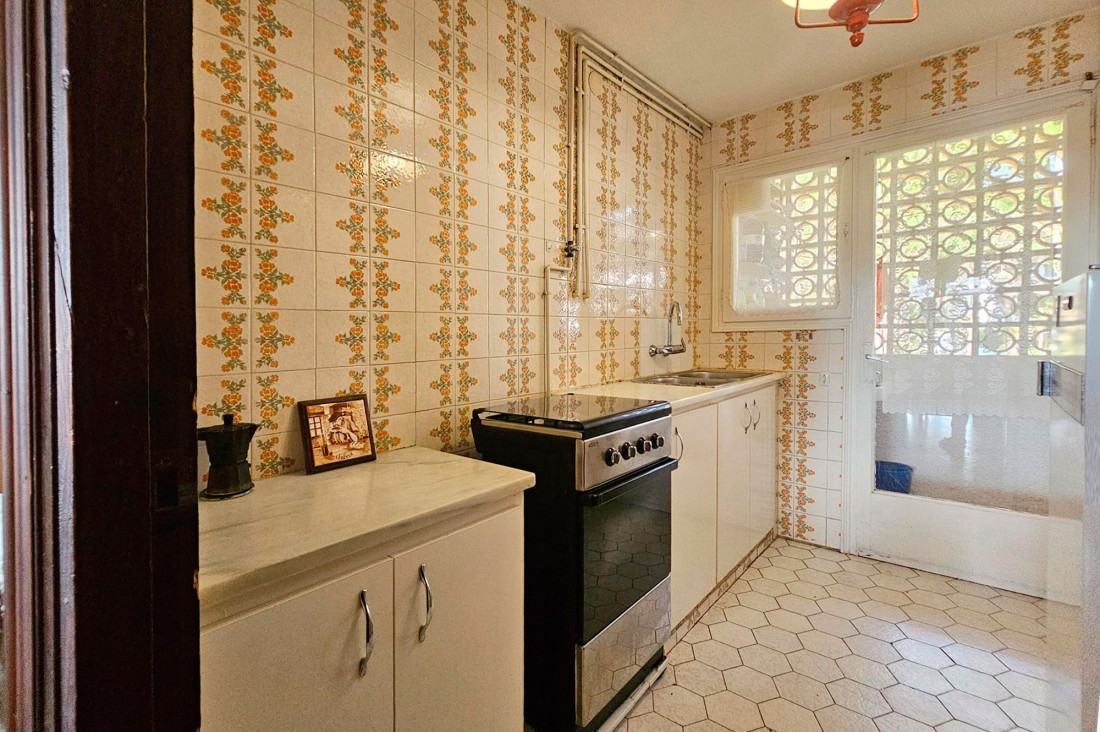 L’apartament està situat en un segon pis i gaudeix d’una vista al paisatge de la zona, agradable. Es compon de sala d’estat amb xemeneia, cuina amb galeria- rentador. Les habitacions són dobles, exteriors amb finestres i armaris encastats.