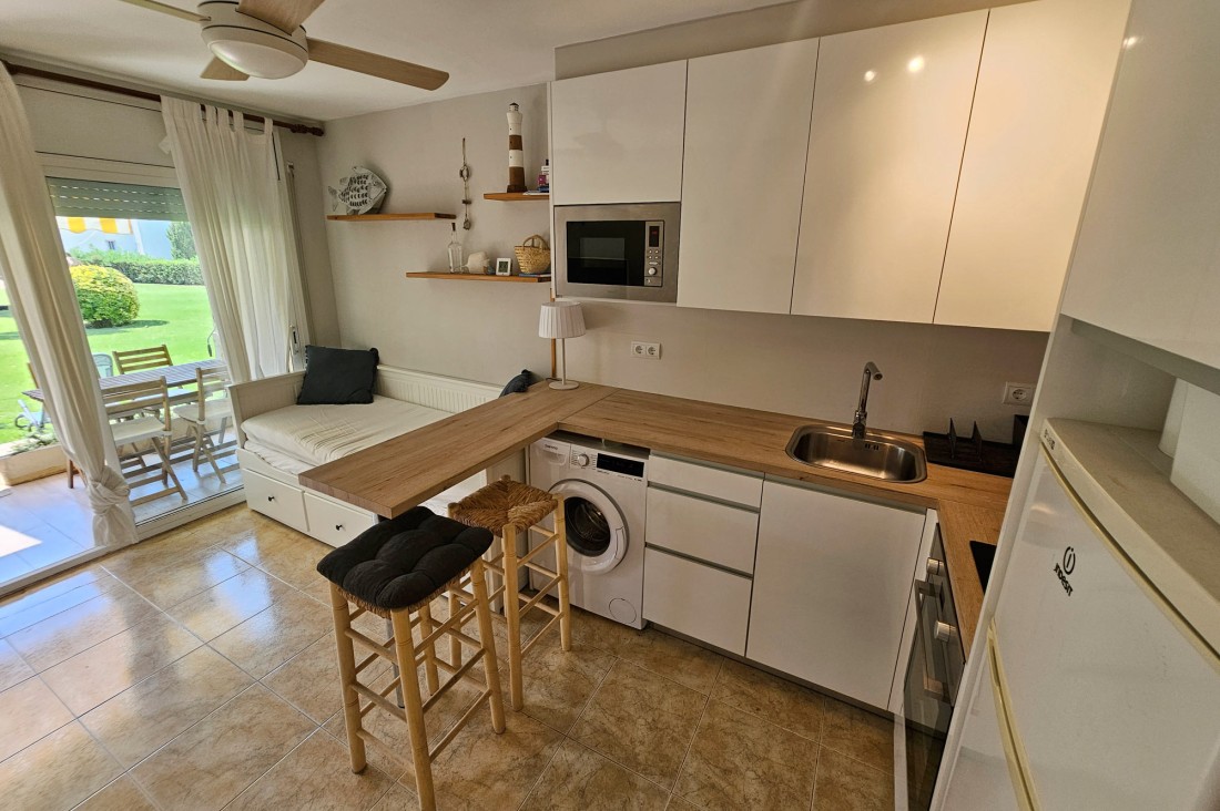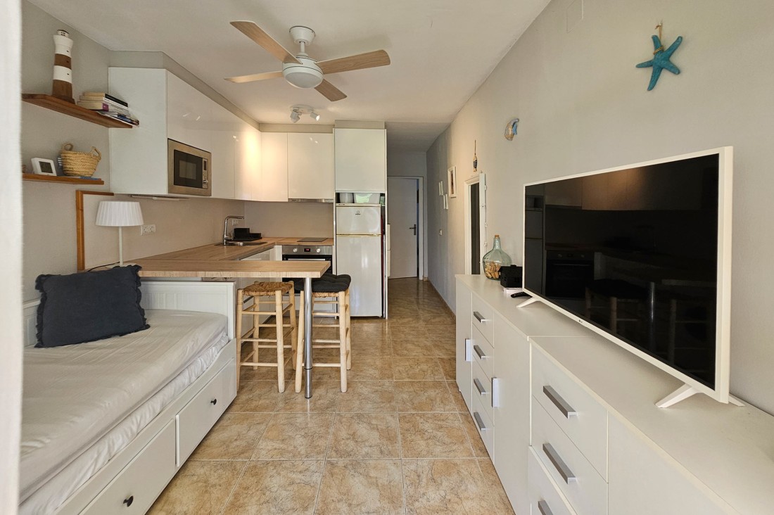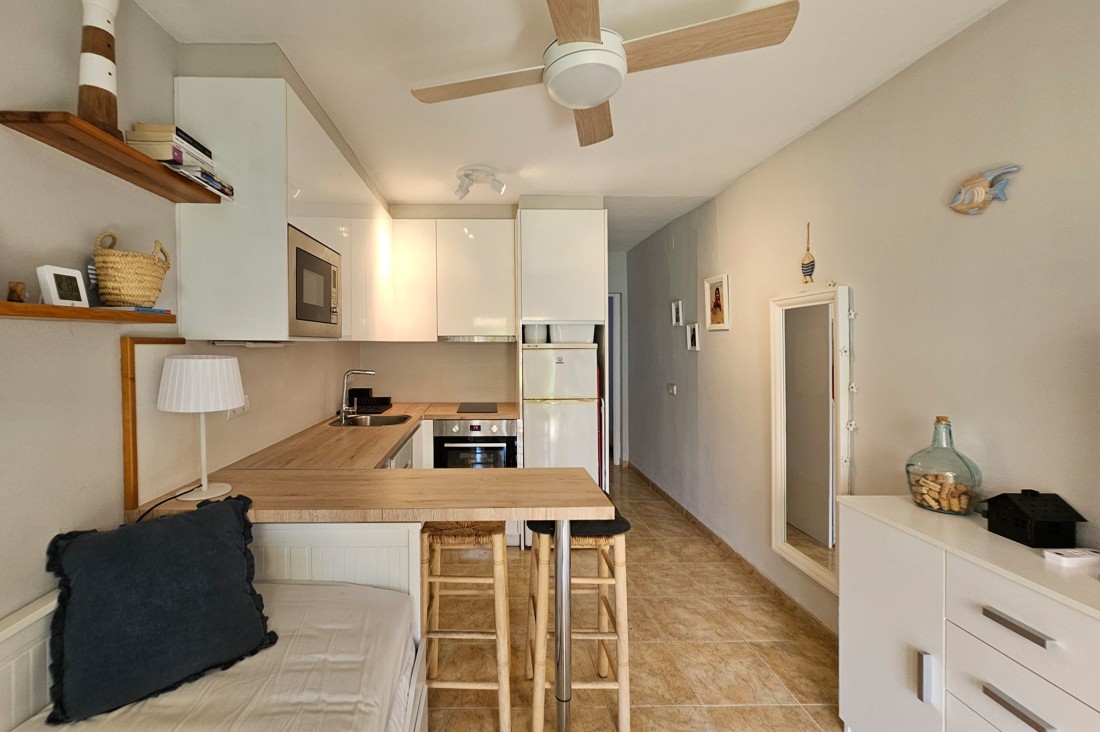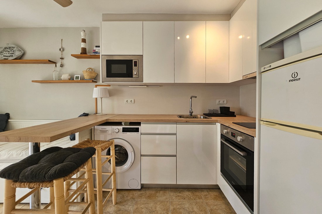 The apartment has very good light and is sunny, it consists of a living room with open kitchen with all appliances. It has a large double bedroom with window and built-in wardrobe and a bathroom with shower and window.