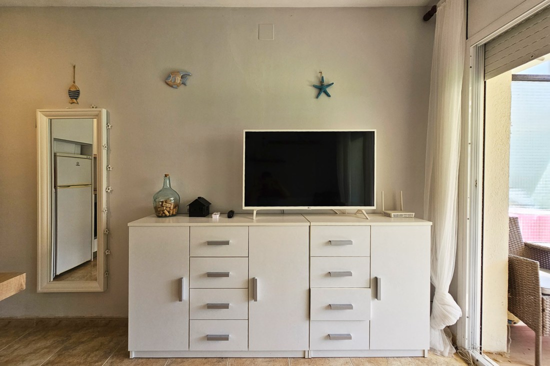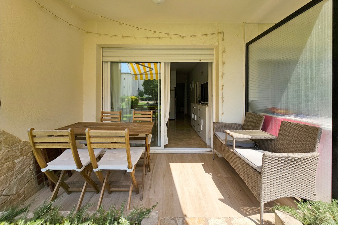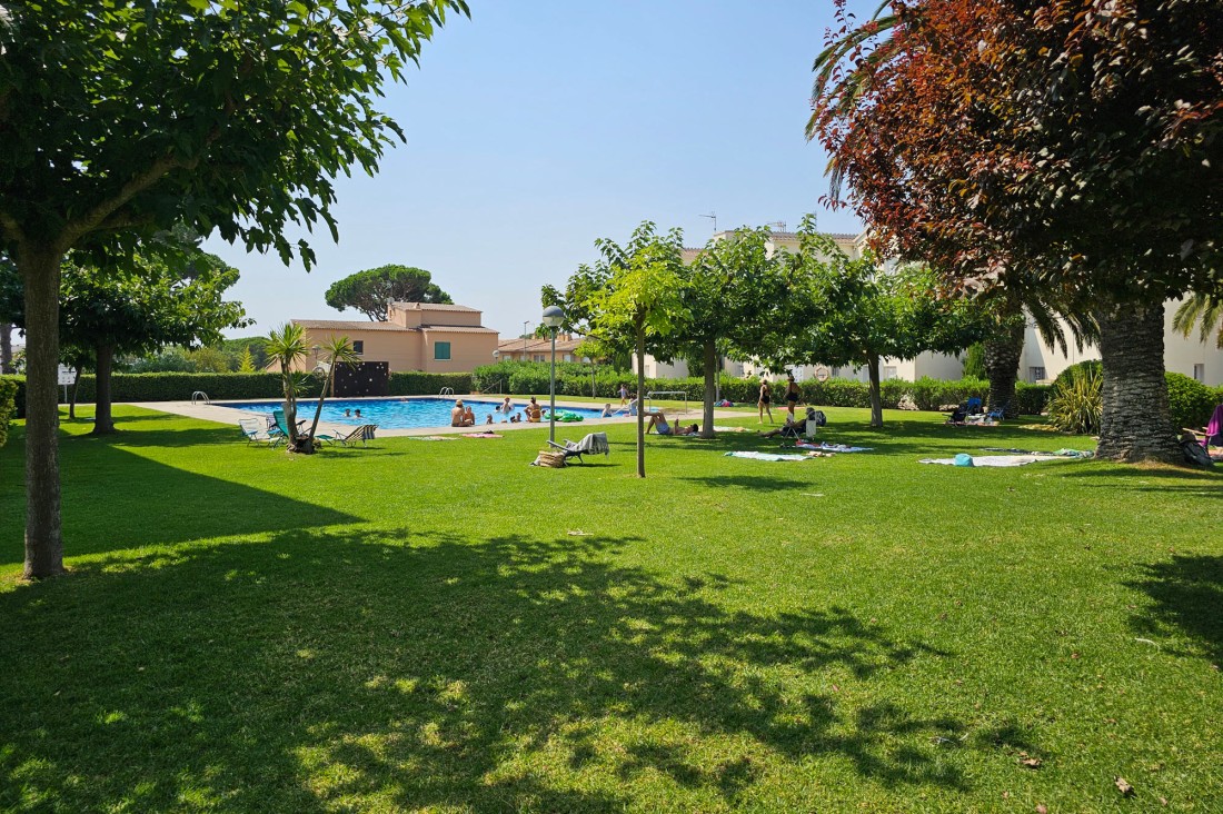 The residence has a swimming pool and a large and beautiful garden area. The apartment stands out because it is on the ground floor and has direct access to the garden and the common area.